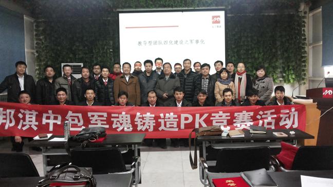 2月7日晚,為檢驗軍魂培訓(xùn)落地效果,37名參訓(xùn)人員在新療方形會議室分石羊隊、西北狼隊、亮劍隊、勇士隊進行了團隊風(fēng)采展示,他們口號雄壯有力、隊伍整體劃一、彰顯訓(xùn)練有素,最后,以景春勝為組長的內(nèi)務(wù)勇士隊勇拔頭籌,石羊隊及女子舞蹈隊分獲軍魂P(guān)K第一名及特別獎;在個人風(fēng)采展示環(huán)節(jié)中,大家盡展才華、當(dāng)仁不讓,唱歌、朗誦、笑話不一而足、你方演罷我登場,齊永峰、張少偉、馬小鵬分獲前三。8日早,在學(xué)習(xí)了中包“八大管理體系”后,進行了隆重的團隊宣誓活動,為進一步提升銷量、鞏固省內(nèi)第一、早日稱雄西北鼓與呼!此次活動達到了凝聚人心、匯聚力量的目的,頒獎、合影后,邦淇中包企業(yè)軍魂鑄造培訓(xùn)營活動宣告圓滿結(jié)束。