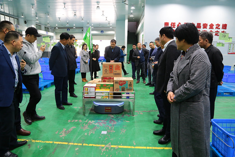 簽約儀式后,與會領導與企業代表、專家等視察黃馬甲生鮮物流基地,并在石羊集團總部參觀座談。