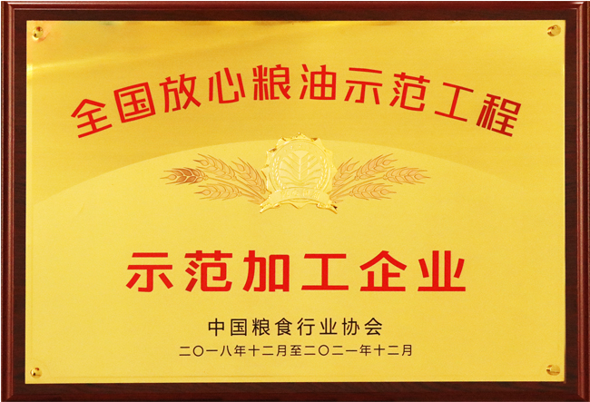 2018年12月-2021年12月中國糧食行業協會授予“全國放心糧油示范工程示范加工企業”